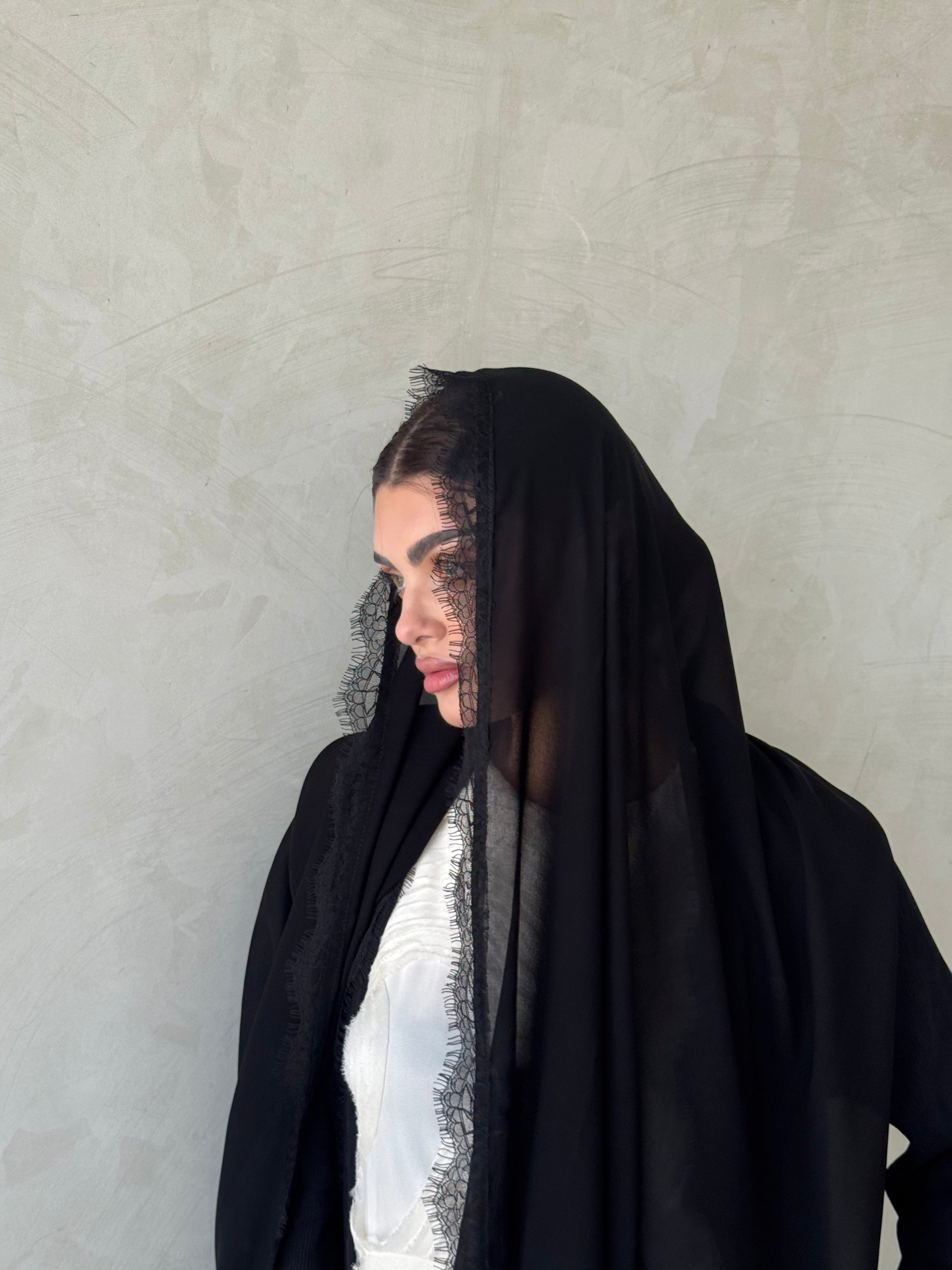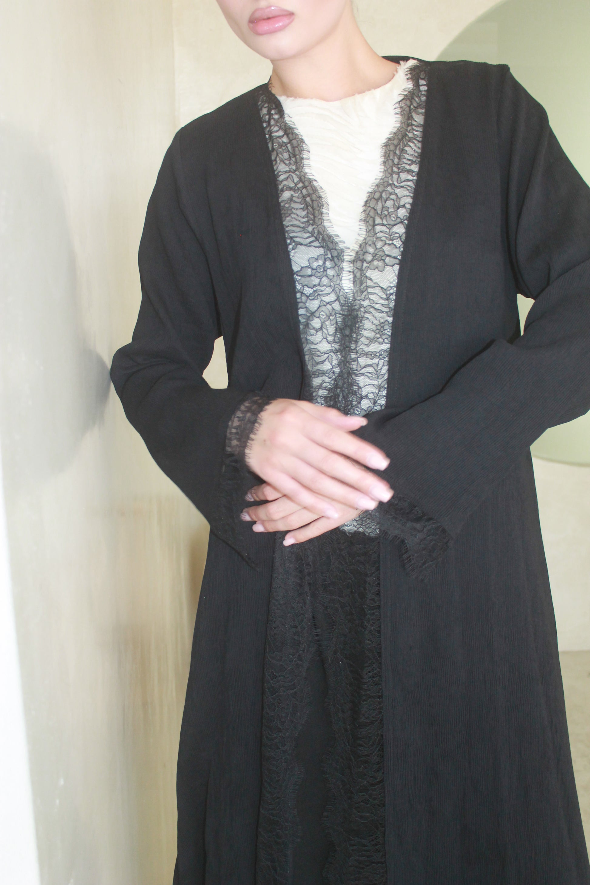 Crushed Crepe Abaya with Lace Trim