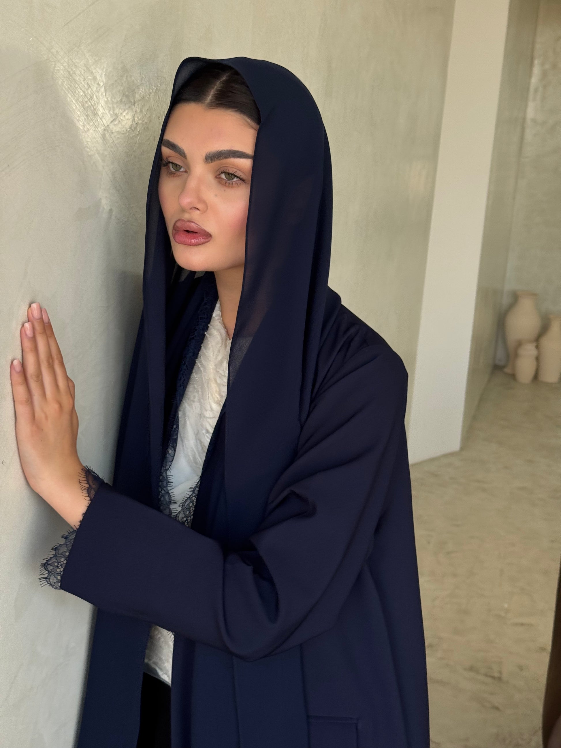 Mini Mart Fabric Blazer-Style Abaya with Lace Trim
